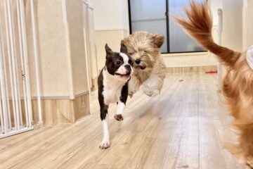 2022-09-24 犬の保育園HOTパピー三鷹市保育園犬犬の幼稚園社会化 3Weeks Trial中のマウたん with 保育園生まろんたん&たらちゃん 3Weeks Trial中のマウたんも少しずつトレーニングの成果が出てきています! 他のわんちゃんへの対応をお勉強中!まだまだ伸び代が 保育園生のまろんたんとたらちゃんと一緒にHOTで♪ 夕方にはチップップも来てくれてママさんと遊びと慣れをがんばってくれました!!
