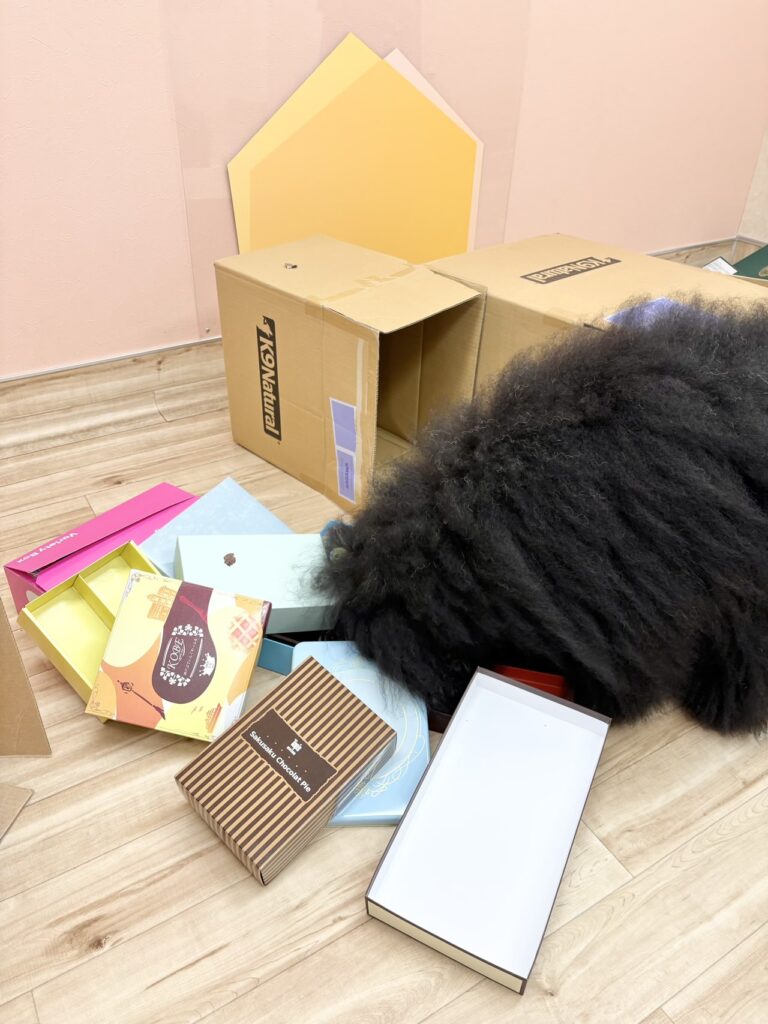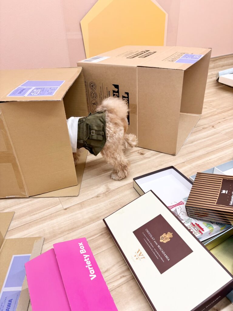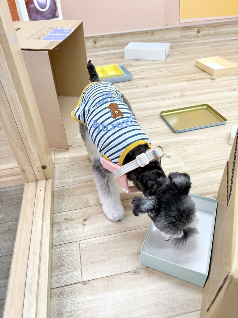 『夢中で箱なんか関係ない!』子や『ゆっくりおやつを探す』個性が出ますね(^o^)♪