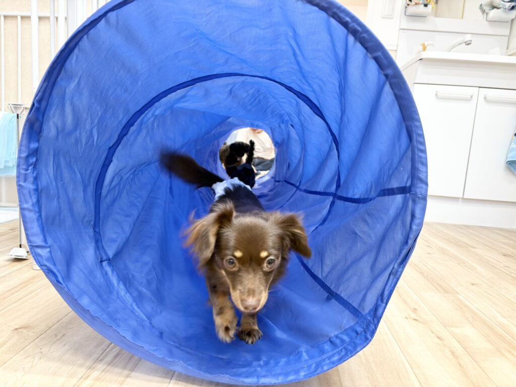 2025-10-14 犬の保育園HOTしつけパピー三鷹市吉祥寺子犬武蔵野市犬犬の保育園犬の幼稚園 くぐれくぐれ〜♪犬の保育園HOT COPY LINK 本日はみんなでトンネルをしてみました!!! ドキドキしながらも自分から入ってくれて、初めての【チワックス】のMAXちゃん、【チワプー】のムーンちゃんはスタッフもびっくりする程すぐ入ってトンネルの上も乗ろうと一生懸命でした(^^)/ 慎重な子もいればパワフルな子もいてとても可愛く個性が出ますね!!! 夏はプール、冬はトンネル、ボールプールをし登園中は楽しんでもらっています⭐︎ みんなとても楽しそうでした〜!!!!