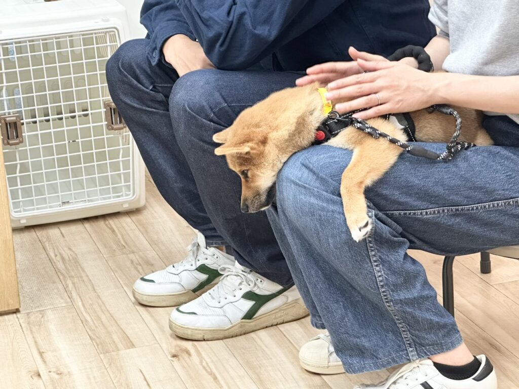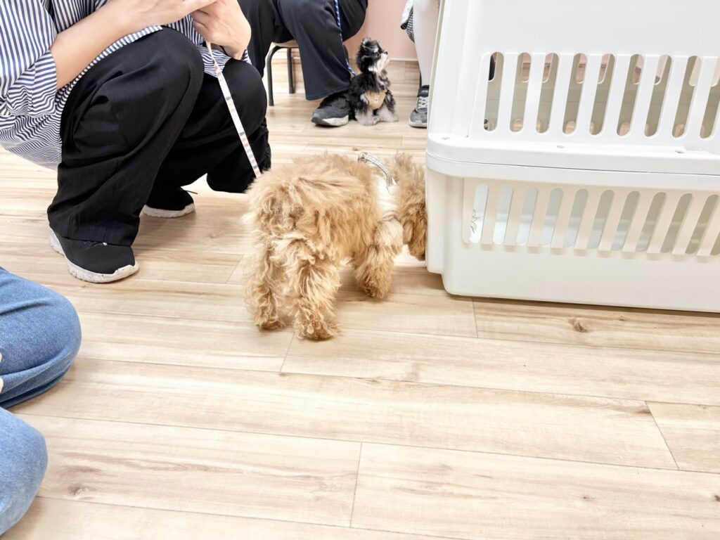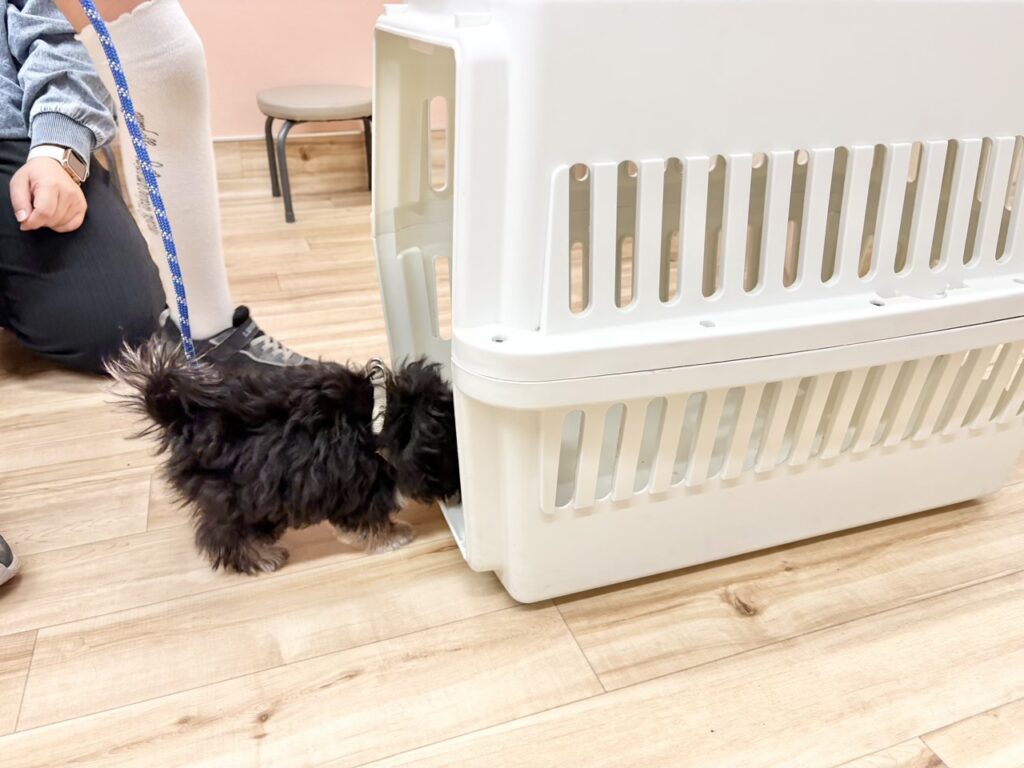 初めはソワソワして緊張気味のパピーちゃんたちでしたが、クレート慣れは全員入ってくれました(°_°)!