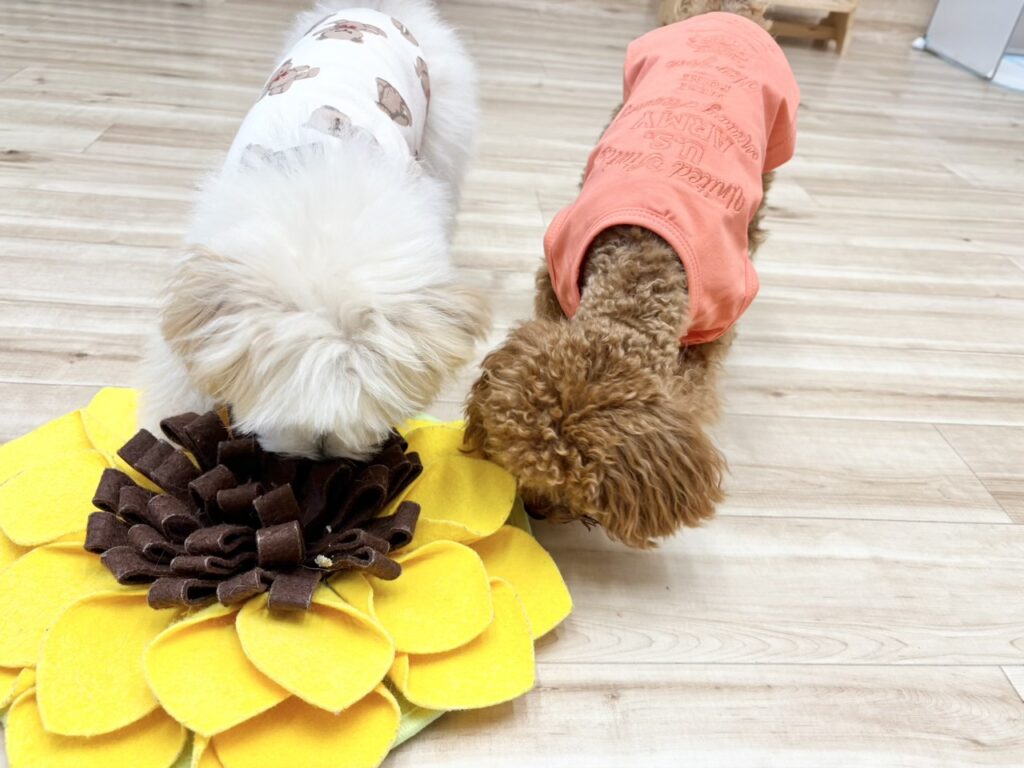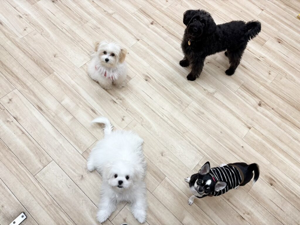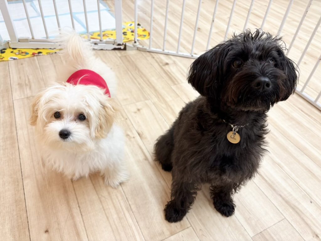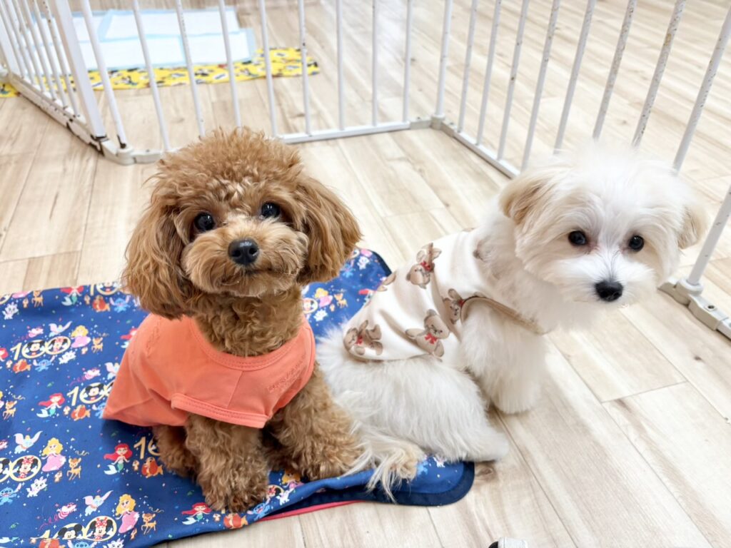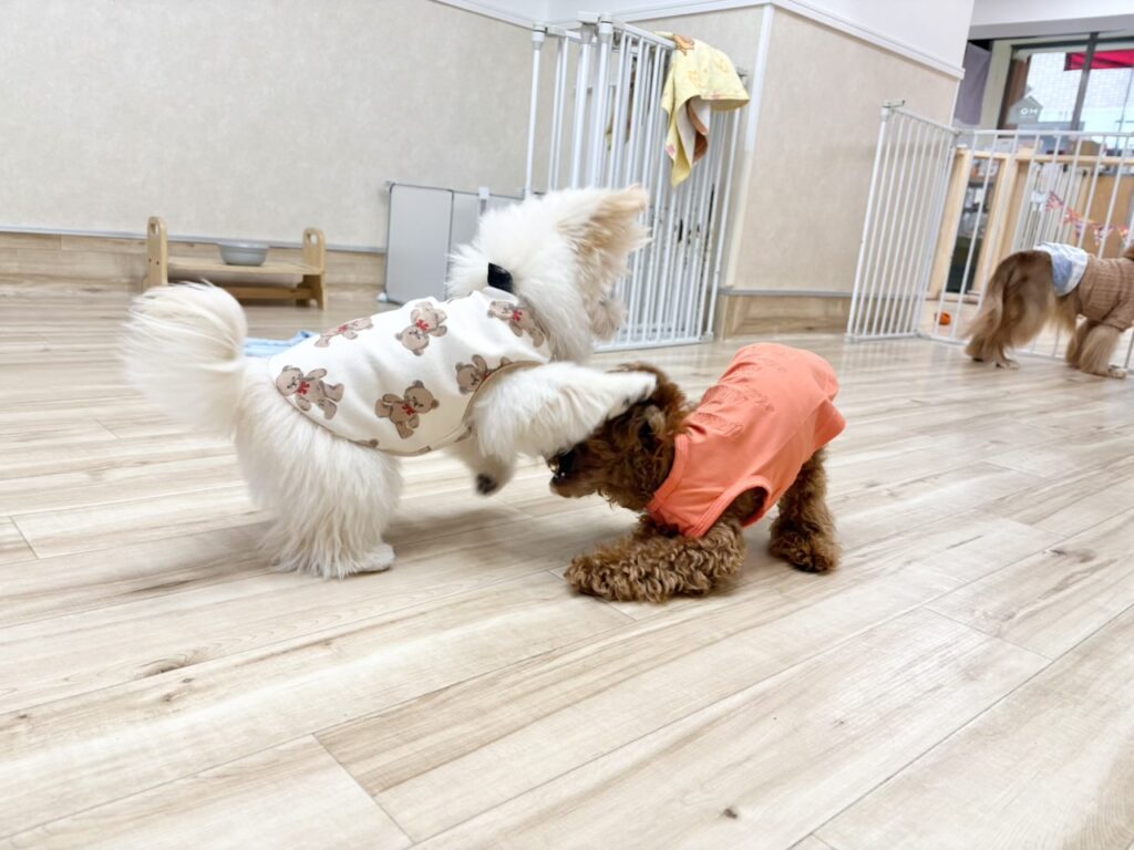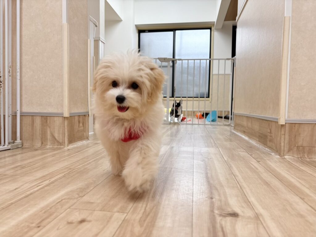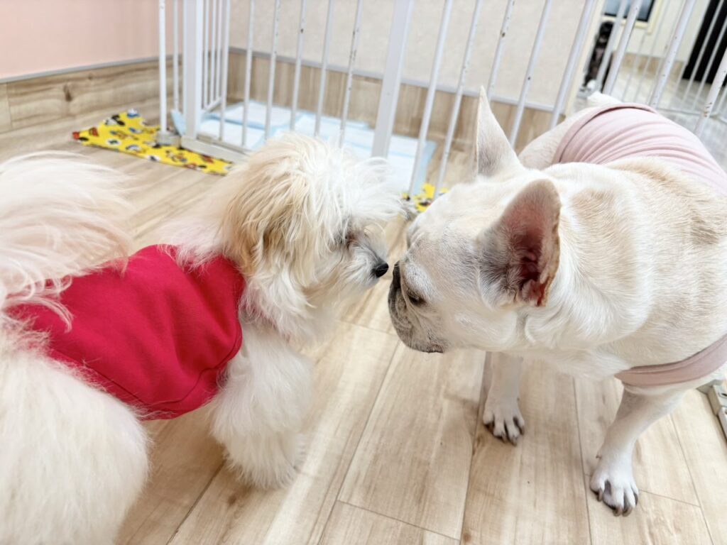初日は慣れない場所、初めましてのわんちゃん達で緊張気味でしたが、スタッフは覚えてくれていたのか甘えてきてくれました〜!