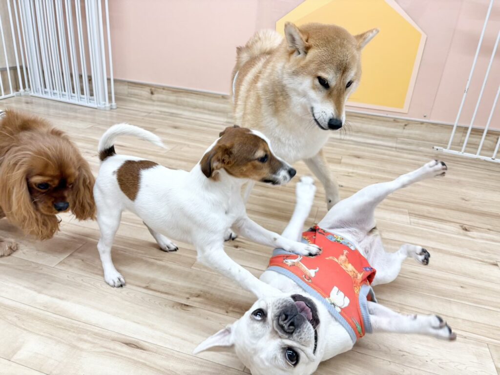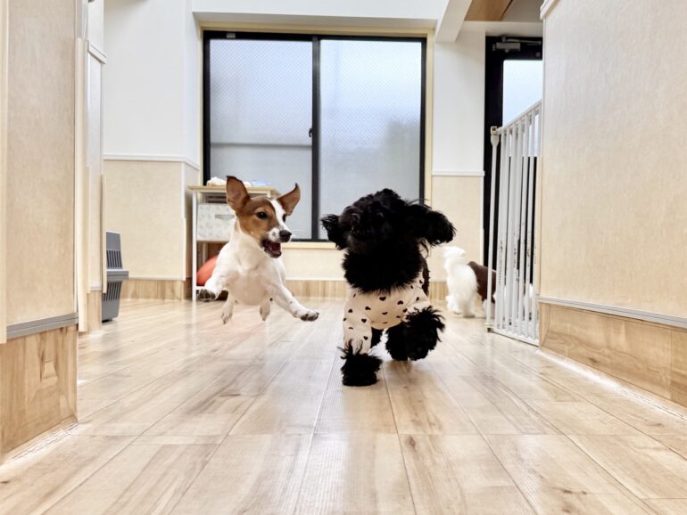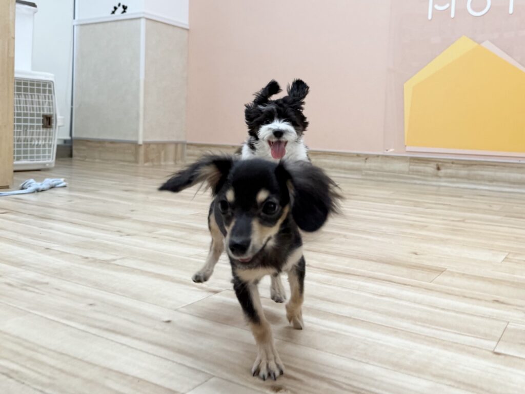 保育園生のチワックスのMAXちゃんを気に入ったのかずっと追いかけてお昼明けもすぐ一直線で向かっていました笑笑