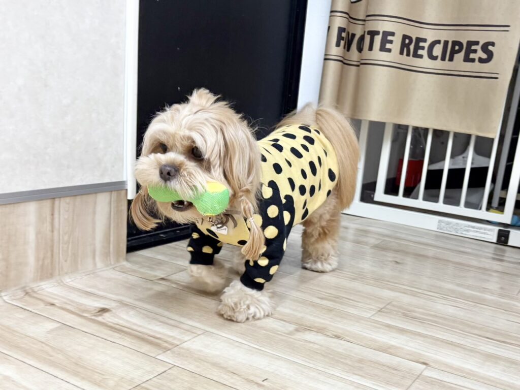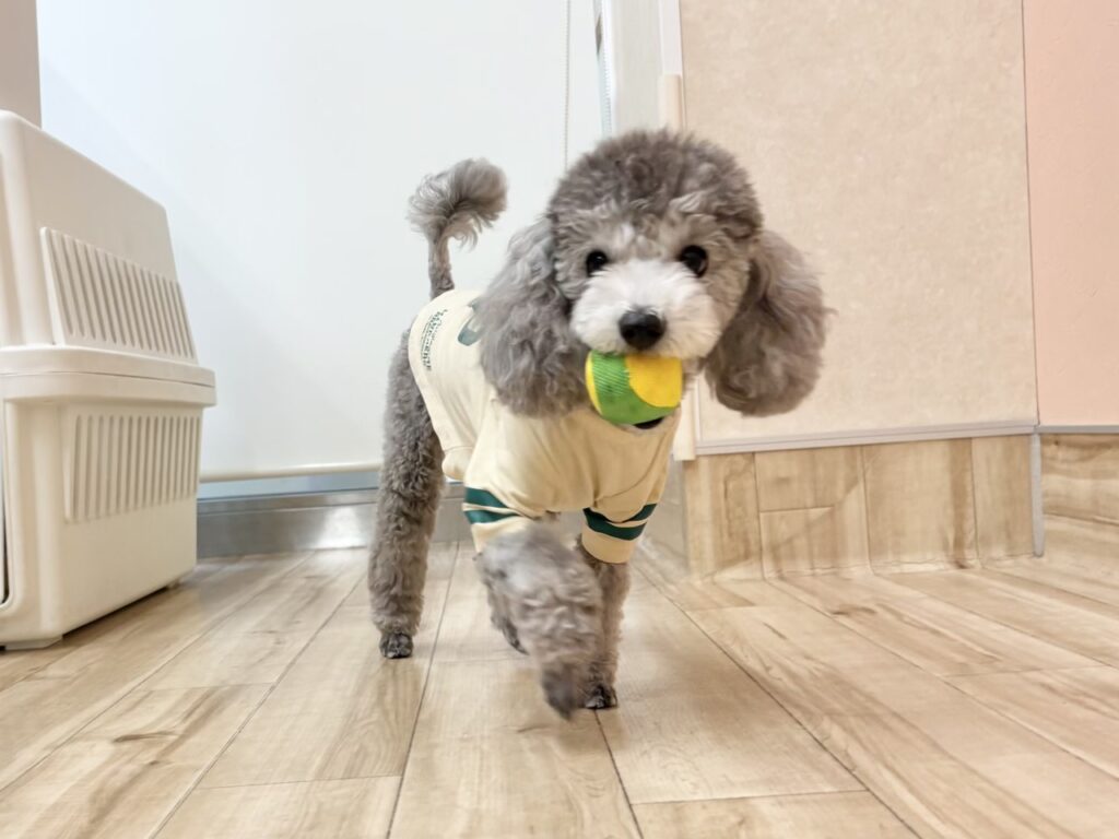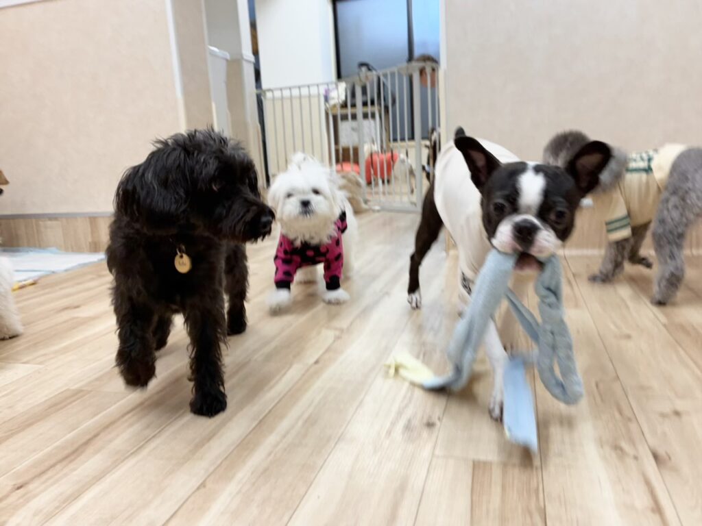 【ボストンテリア】のコハクちゃんはおもちゃを取られないように一生懸命逃げてそれを追いかける保育園生だったり、1人の空間で遊んでみたり、好きな子に夢中でひたすら追いかける子だったり笑笑