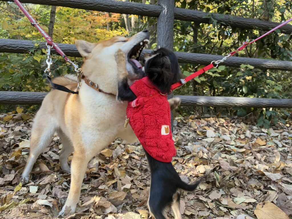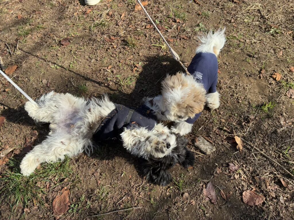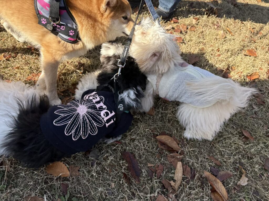 お外で大好きなお友達に会えてテンションあげあげのみんなに飼い主様も笑って(^-^)