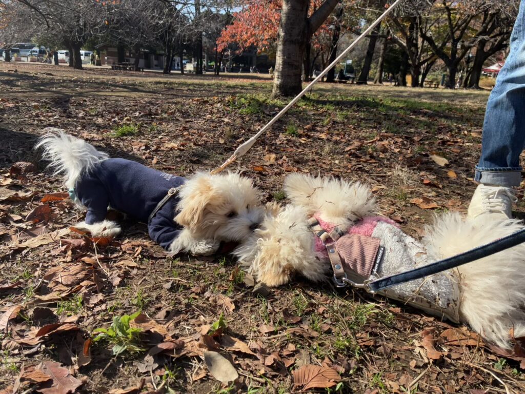 室内のようにお友達ゴロゴロ転がり葉っぱまみれになっていました笑笑