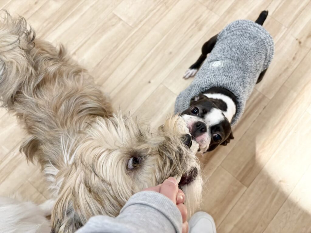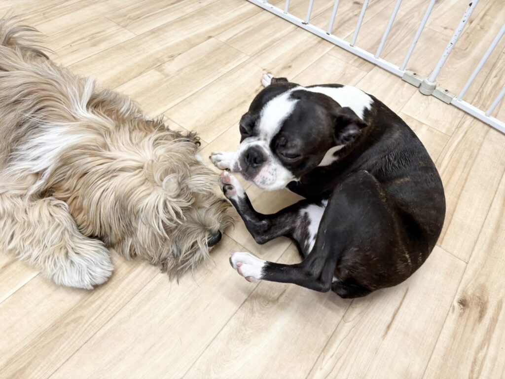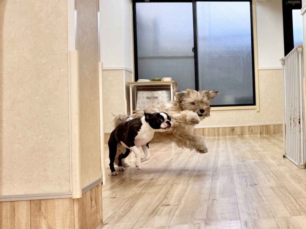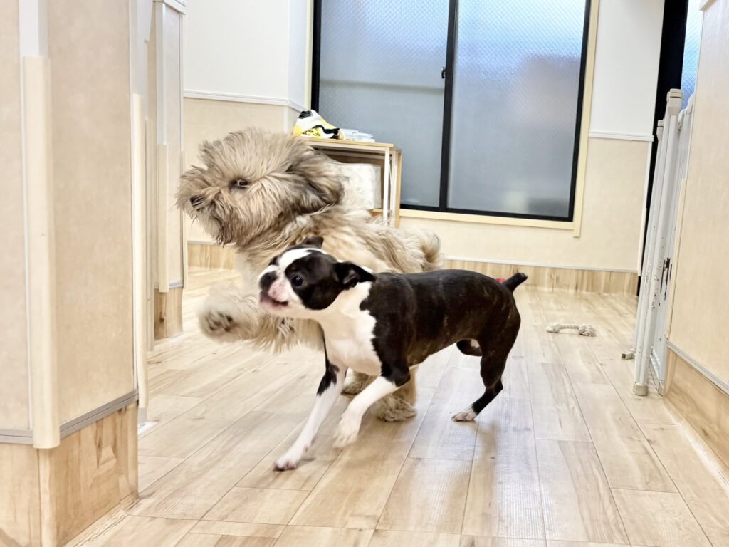 2026-01-23 犬の保育園HOTしつけパピー三鷹市吉祥寺子犬武蔵野市犬犬の保育園犬の幼稚園 コハこま♪犬の保育園HOT COPY LINK チベタンテリアのこまちちゃん×ボストンテリアのコハクちゃん!! 登園直後から2人の世界に入り込んでわちゃわちゃ(°▽°)♪ 見ていてとても迫力があり‥‥。しゃがんでおいでをすると猛スピードでぶつかってきます-_-b トレーニングしてもどんだけ遊んでもまだまだ元気な2人その体力分けてほしいですね!笑 帰って即寝の2人ですが、それくらい沢山エネルギーを消費してくれています!!! いつもお疲れ様!!お家でゆっくり休むんだよ〜!!!!!